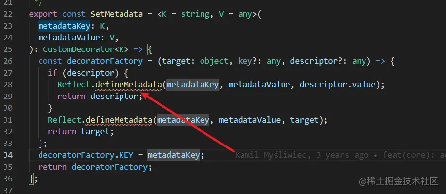 采用Reflect.defineMetadata去定义一个元数据。而Reflect.defineMetadata 是 Reflect Metadata的方法。