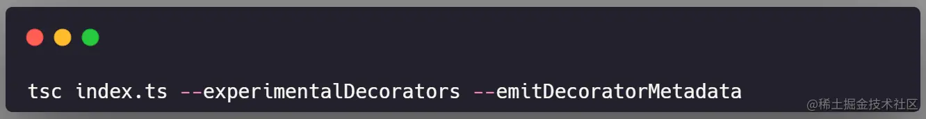 但是tsc编译选项可以通过开启emitDecoratorMetadata就可以自动添加一些元数据。因为Reflect.metadata还是草案阶段,所以还需要开启另一个选项experimentalDecorators。