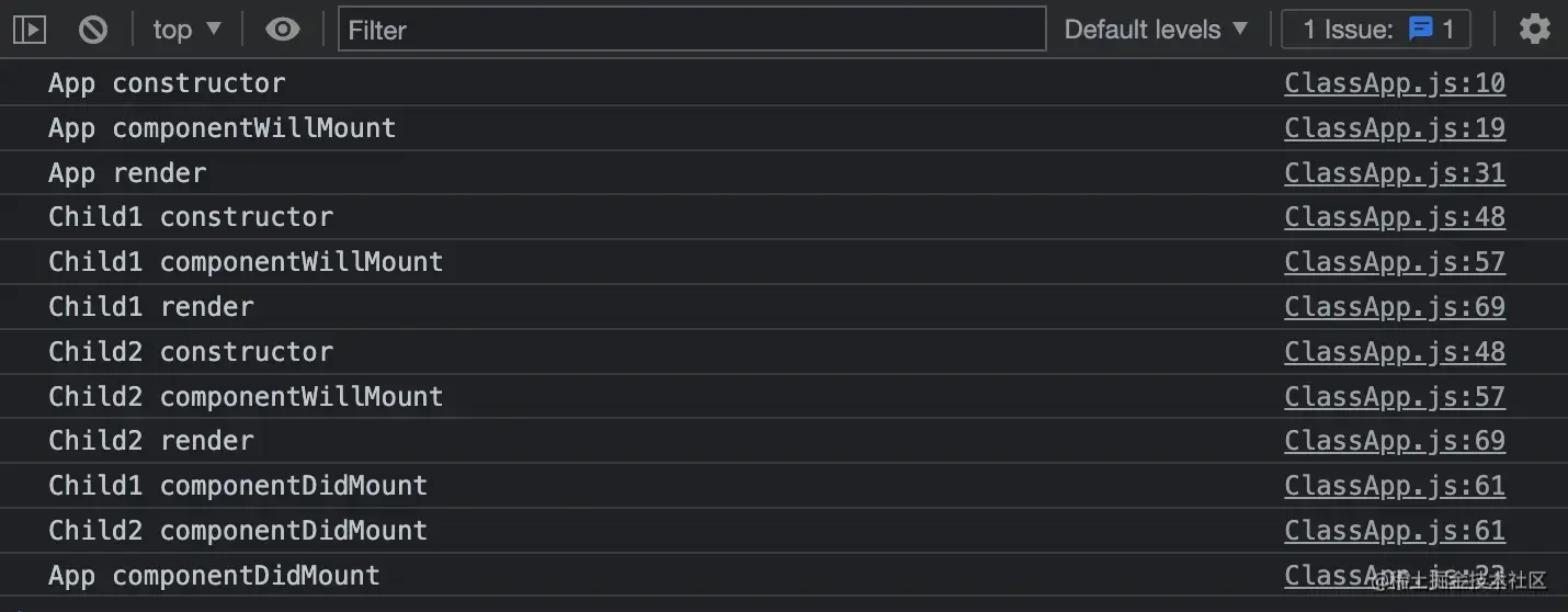 至于先执行父组件的 render 再执行子组件的 constructor 是因为:先执行父组件的 render 函数之后,才知道父组件有哪些子组件,接着才能调用对应子组件的 constructor 去构造子组件。这一切都是如此的合理!