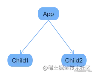 为了探究父子组件以及不同子组件之间生命周期函数的执行顺序,我初始化了三个组件分别是父组件 App、子组件 Child1、子组件 Child2。它们的结构如下: