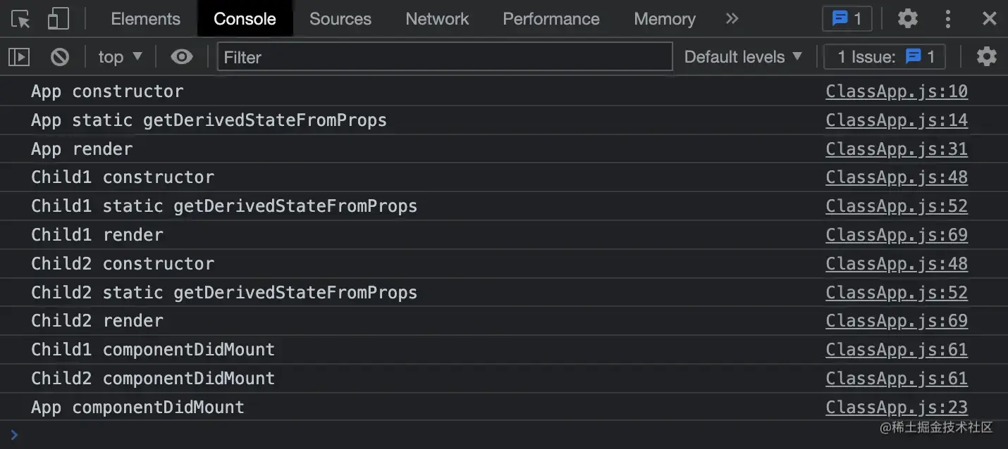 可以看到,在首次渲染时,getDerivedStateFromProps 的执行顺序基本上替代了 componentWillMount 的执行顺序。