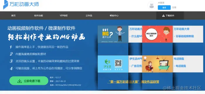 万彩动画大师是一款好用的Windows动画视频制作神器,操作比 AE、Flash、Premiere 简单得多!不需要任何基础,就能使用它制作动画视频,可谓省时省力!适用于制作动画宣传片、微信动画视频、广告片、营销动画、趣味课件动画、微课视频等,无论是新手还是专业人士,都同样适用。