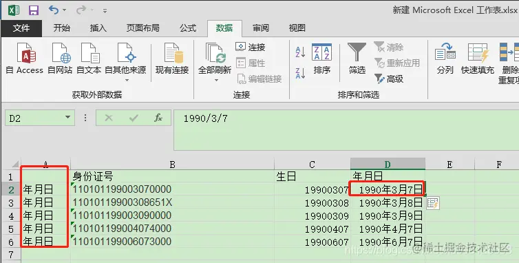 Excel 2016 智能提取与合并 潇凝子潇 2022-11-07 118 阅读1分钟 本文已参与「新人创作礼」活动,一起开启掘金创作之路。 1.插入带年月日的生日 编辑 2.插入一列插入年月日 在D列中写入一条 1990年3月7日 选中改列Ctrl+e 快速填充