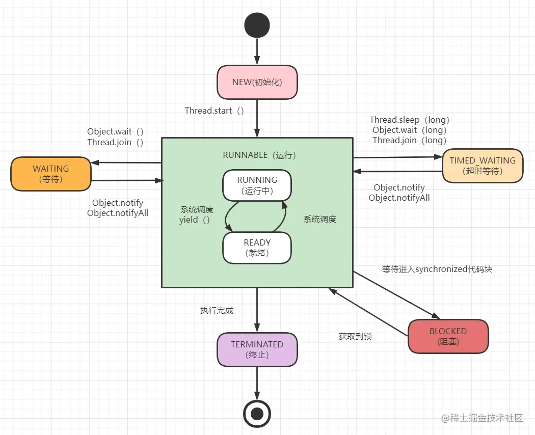 Thread.sleep(long)方法,使线程转到超时等待阻塞(TIMED_WAITING) 状态。long参数设定睡眠的时间,以毫秒为单位。当睡眠结束后,线程自动转为就绪(Runnable)状态。