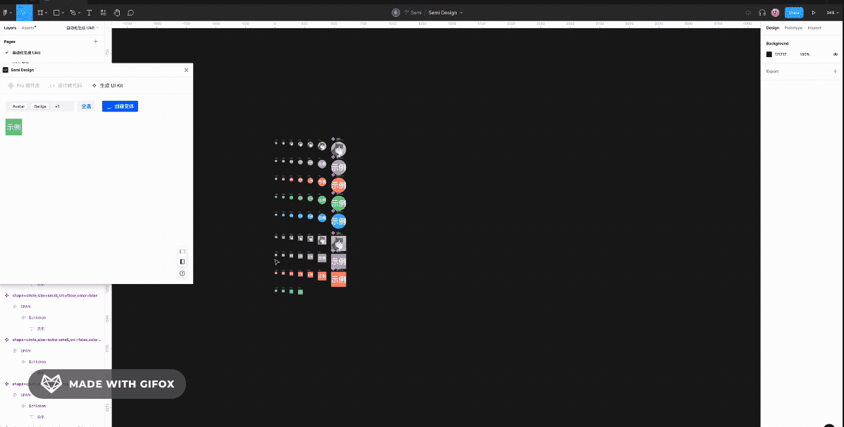 于是 semi design 就做了 C2D 功能,编辑完主题之后可以用这个来生成对应的 figma 设计稿资源。
