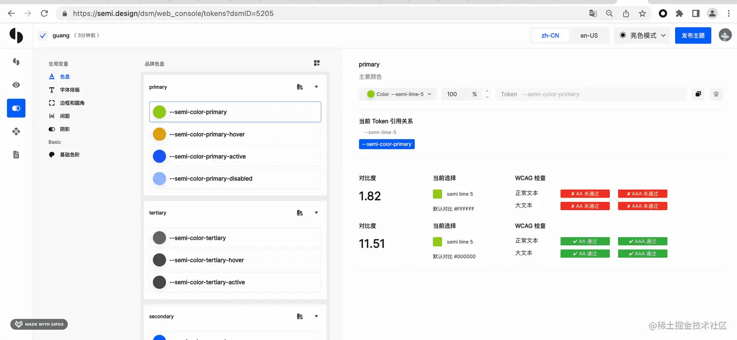 semi design 是抖音开源的组件库,它支持主题的自定义,比如指定不同的主题色、字体大小、圆角尺寸等,而且提供了一个可视化的主题编辑器: