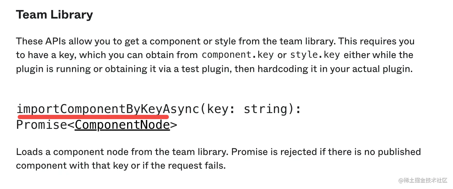 figma 插件提供了 importComponentByKey 的 api,可以从团队 figma 组件库(team library)中引入一个组件,