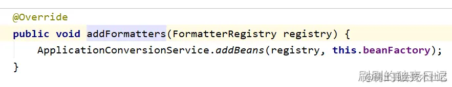 addFormatters方法用于添加默认的{@link Converter Converter}和{@link Formatter Formatters}到注册中心。