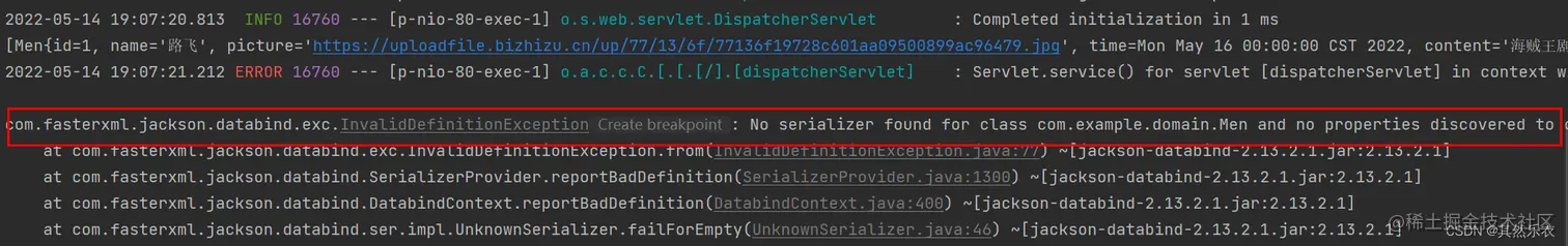 报错: No serializer found for class com.example.domain.Men and no properties discovered to create Bean...