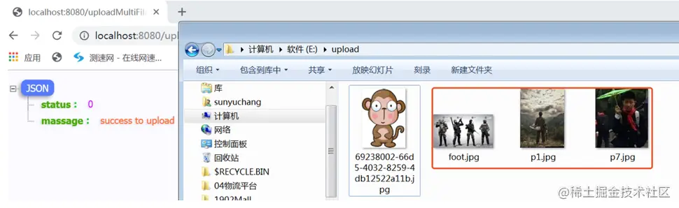 正常情况下,我们就看到了多文件上传的测试结果,我这里一次性上传了3张图片。