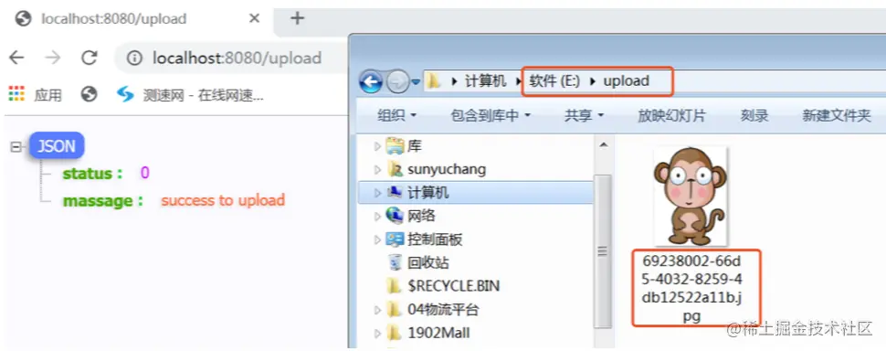 我这里是把文件上传到了本机的E盘目录下,真正开发时一般是上传到Linux服务器的某个目录下,过程都一样的,主要是存储位置的不同。当然现在也有很多项目是采用云存储,关于云存储我会在下一章节中带大家实现。