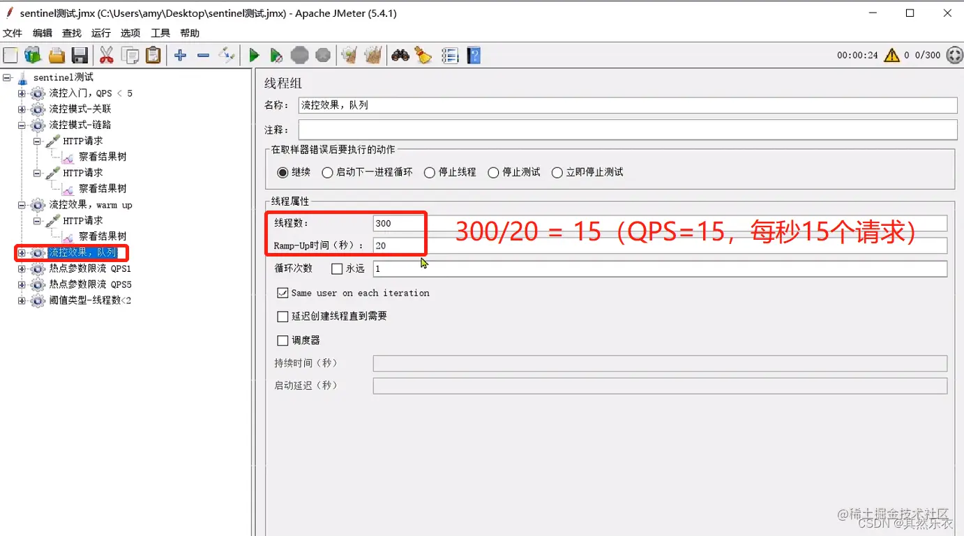 (1) 发出的QPS是15,但大多数是通过的(10)而其它有的都是放到队列里面去了,小部分是拒绝的。