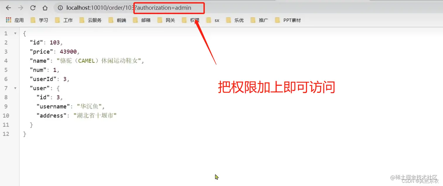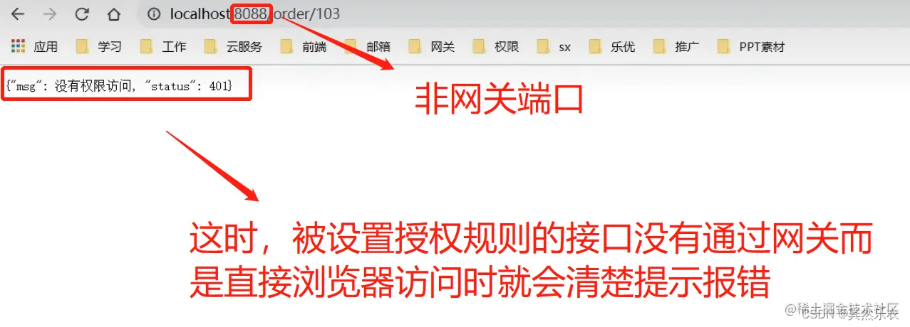 因此,通过上面的授权规则设置后,通过网关来访问的就可以,而通过浏览器直接访问的就不行