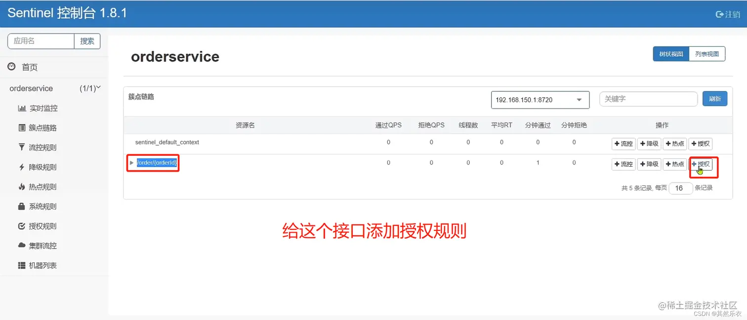第3步: 在sentinel中给端口设置响应的规则进行测试