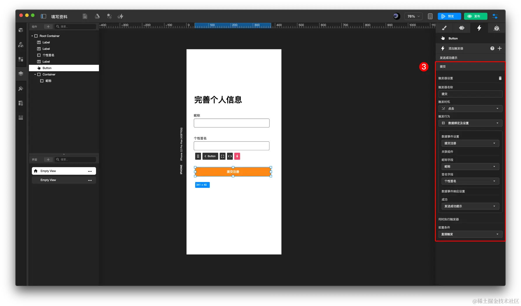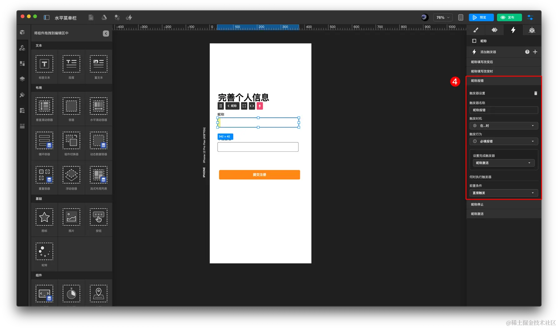 - 在 触发器 中,添加并配置昵称报错 触发器