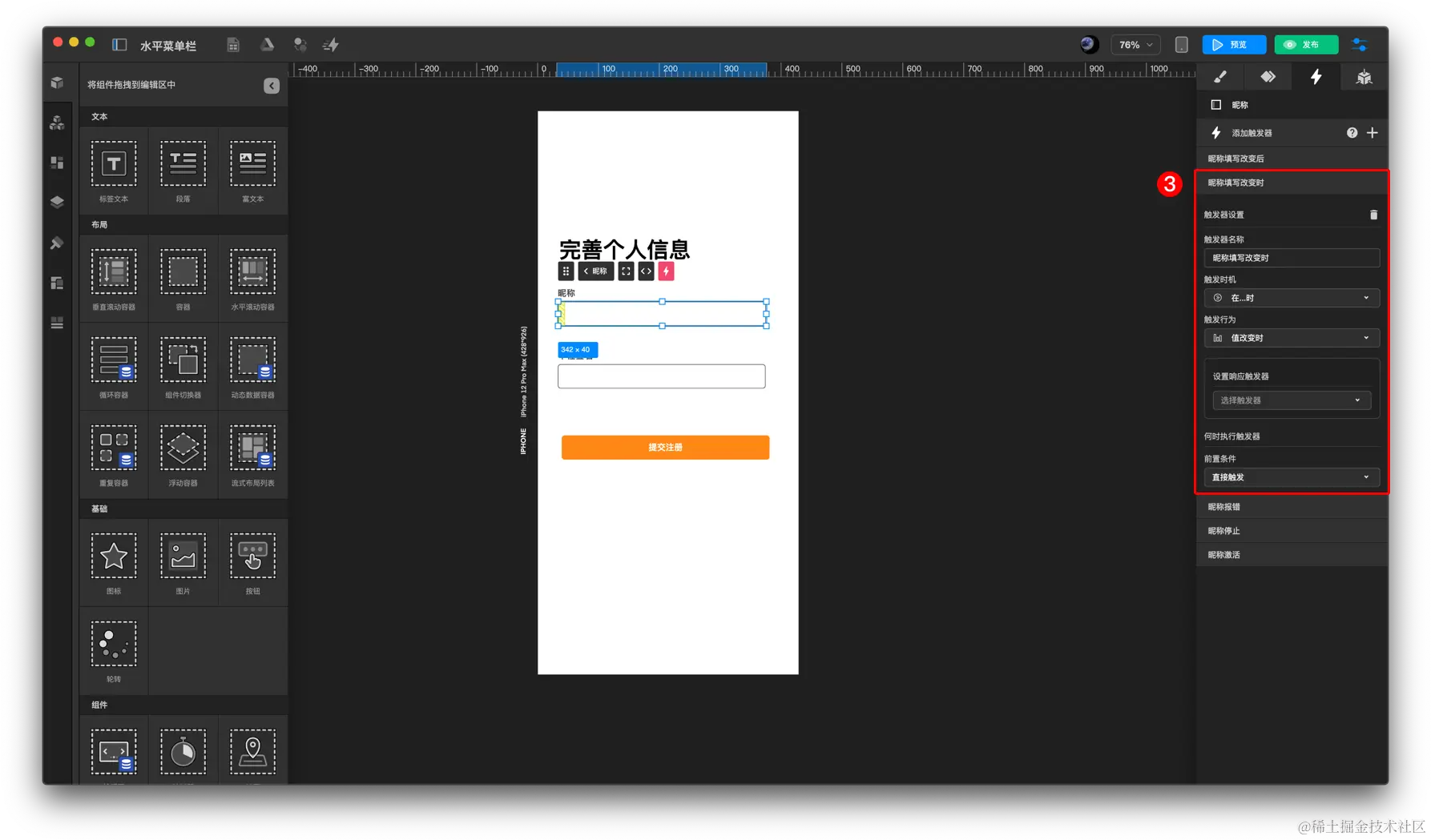 - 在 触发器 中,添加并配置昵称改变后 触发器
