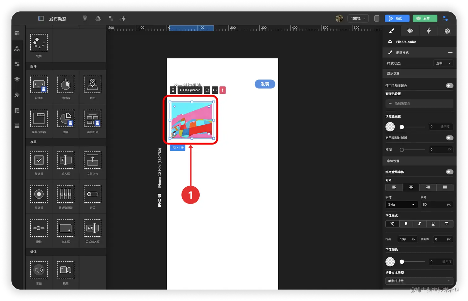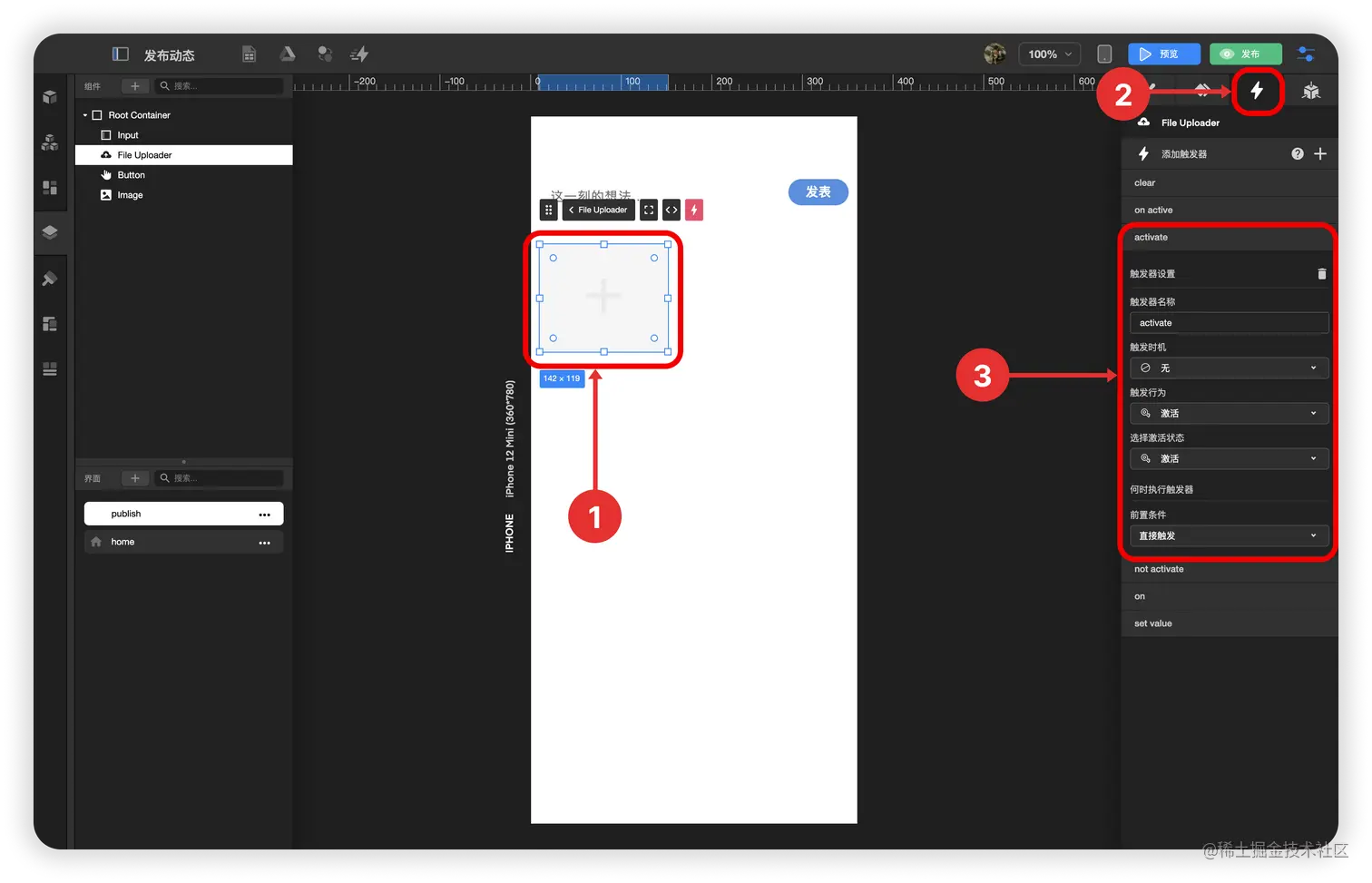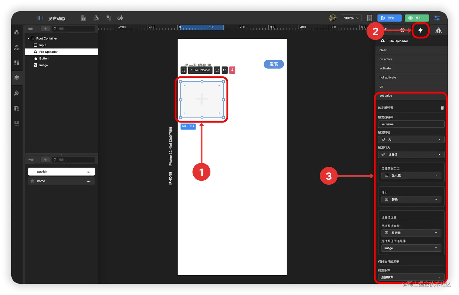 使用文件上传组件,通过配置触发器,实现简易朋友圈的发布功能