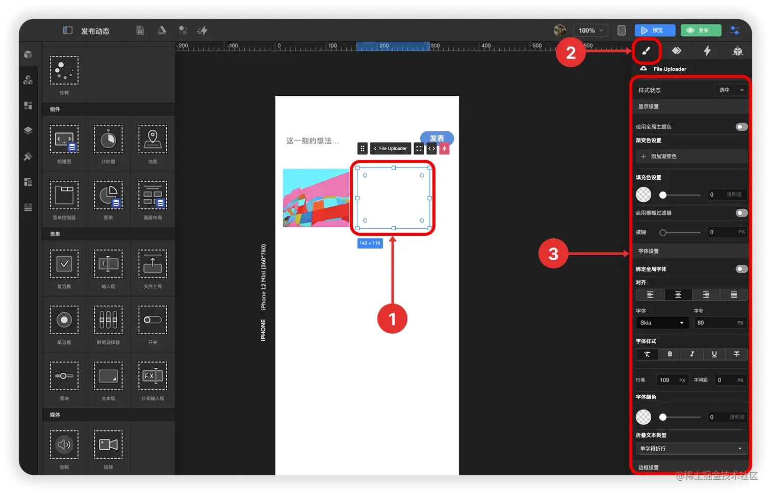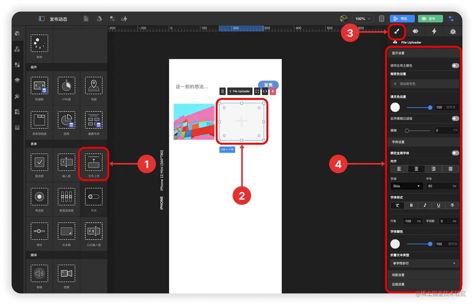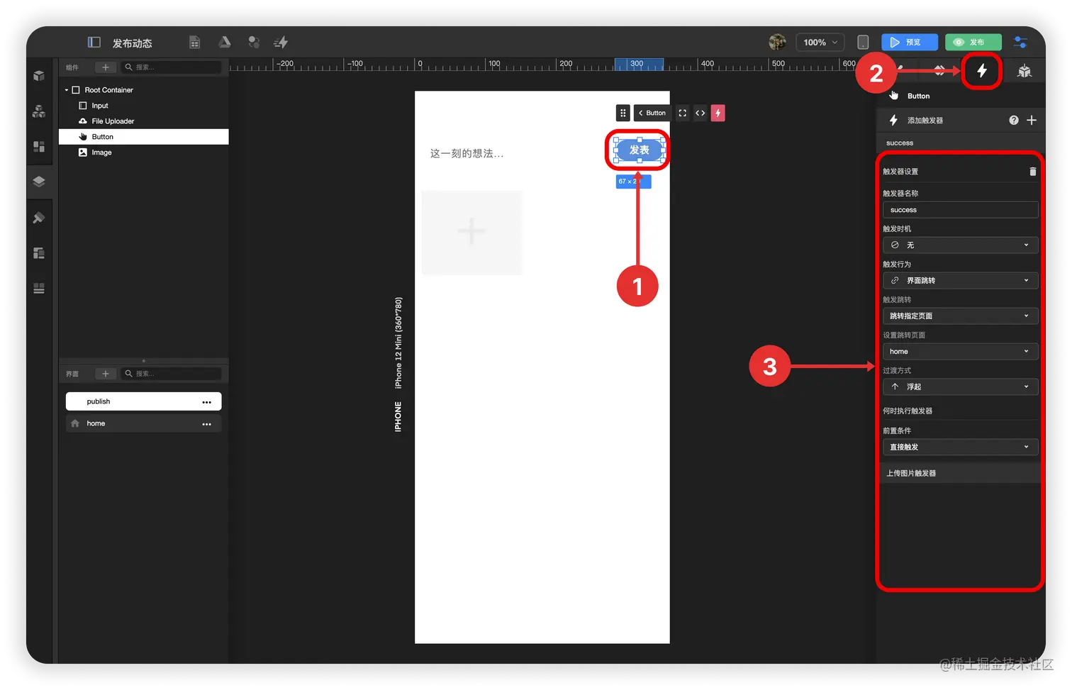 使用文件上传组件,通过配置触发器,实现简易朋友圈的发布功能