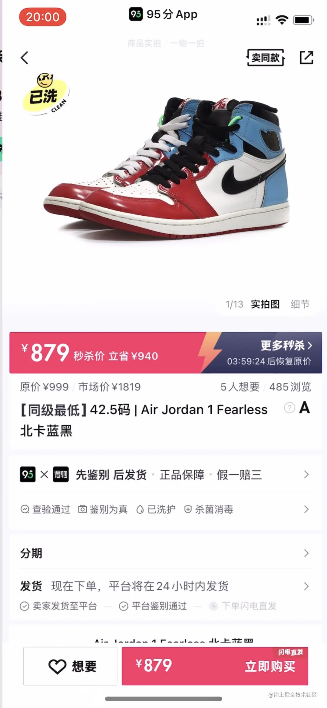 95分App是一种潮流闲置交易平台,主要针对品牌闲置商品交易市场中经常遇到的商品真实性、商品真伪、商品卫生等问题,开创了集商品实物拍摄,查验鉴别,洗护杀菌服务为一体的快速交易流程,并不断探索闲置物品领域的新可能。在这个平台,支持个人跟个人交易,也支持个人跟二手商家交易。95分App技术则是针对内部好的技术文章做一个分享和输出,希望和大家共同学习。