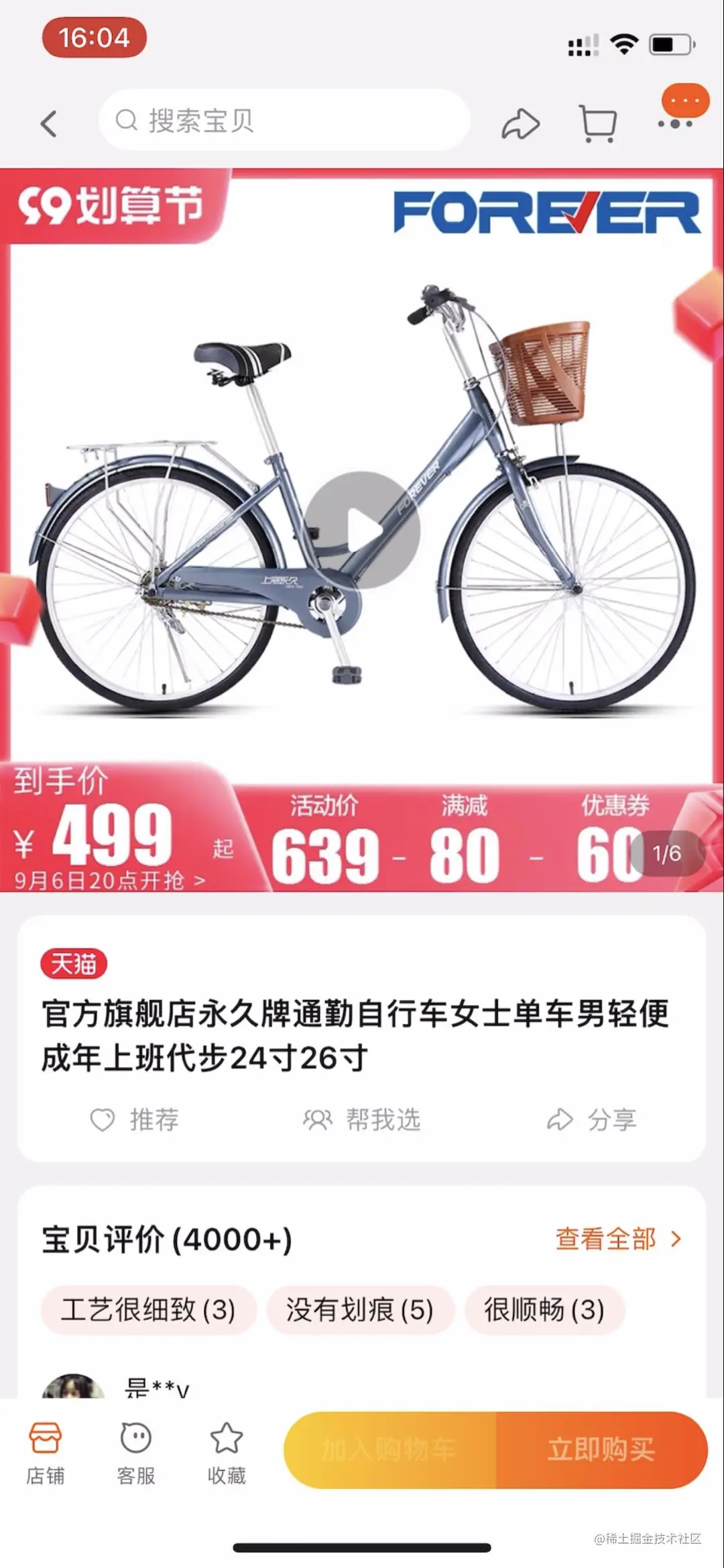 95分商品详情页包含了商品信息,服务保障,发货信息,是商品购买的入口,是支付转化率的核心影响因素之一。商品详情的UV占整个App的60% 左右,是整个App UV最高的页面。所以商品详情页的交互体验尤其重要,在这个环节,我们需要思考如何给出最极致的交互体验。