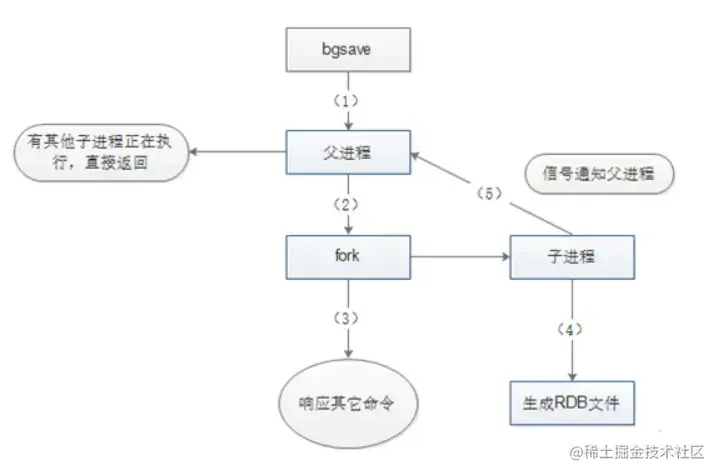 - 而bgsave命令会创建一个子进程,由子进程来负责创建RDB文件,父进程(即Redis主进程)则继续处理请求。