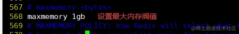 568 maxmemory 1gb #例如设置最大内存阈值为1gb