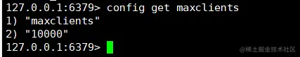 127.0.0.1:6379> config get maxclients