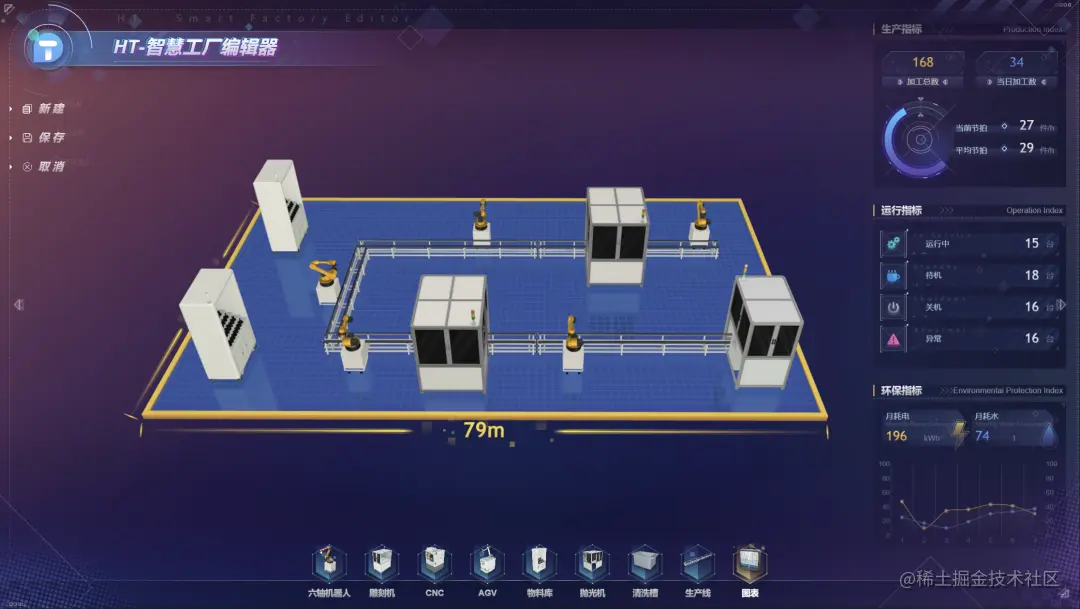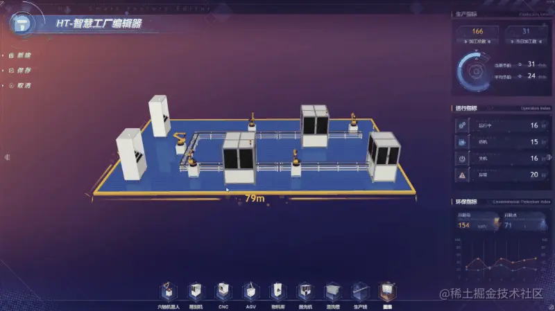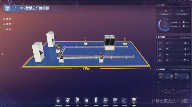 智慧工厂编辑器是基于 HTML5(Canvas/WebGL/WebVR)标准的 Web 技术,满足了工业物联网跨平台云端化部署实施的需求,零代码构建大屏组态、UI 组态、工业组态、三维组态。