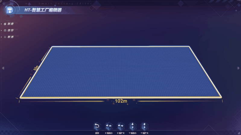 编辑器左侧菜单栏有编辑和预览两个按钮,点击编辑按钮可进行三维组态的新建和保存,保存后可点击预览查看效果。底部的拓扑组件,可自由点击并拖拽到绘图区组合成一条生产线,可快速排版和修改样式。用户可根据车间的生产流程摆放设备,线上还原产品的生产工艺流程。