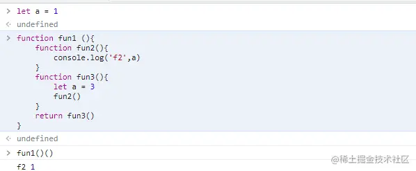 - 作用域链为方法声明所在位置,而非调用位置(后续猜测,函数提升所以a先为3再被a=1覆盖)