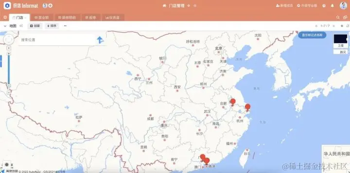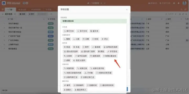 使用 织信Informat 的“地理位置坐标”字段就可以了,其拥有38种字段类型供企业选择。