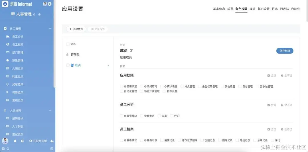 该低代码平台的字段设置中可以为该字段单独设置角色权限。