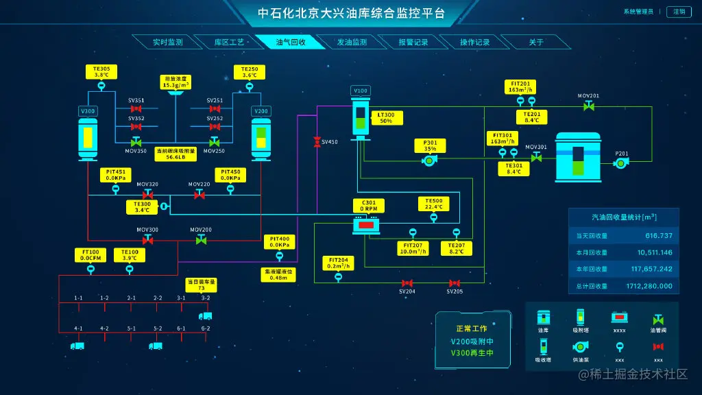 智慧油气井监测系统主要包含了单井实时监控和集油间实时监控配套的支持系统,用户可以根据系统搭建的石油开采运行流程来控制紧急关井和紧急开井的开关。将清管阀、紧急切断阀等设备、管线及其他生产相关的信号采集处理器进行直观呈现,实时更新设备运行效率、机组实时功率等数据,实现对石油开采动态数据进行科学、有效、自动化的生产与管理。