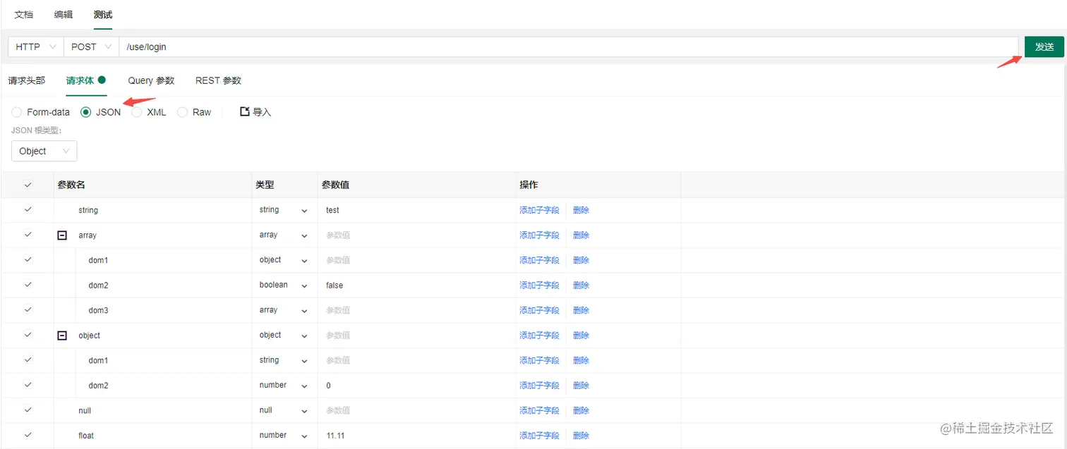 首先确认你的 HTTP 请求体格式,选择相应的请求体格式后点击测试按钮。