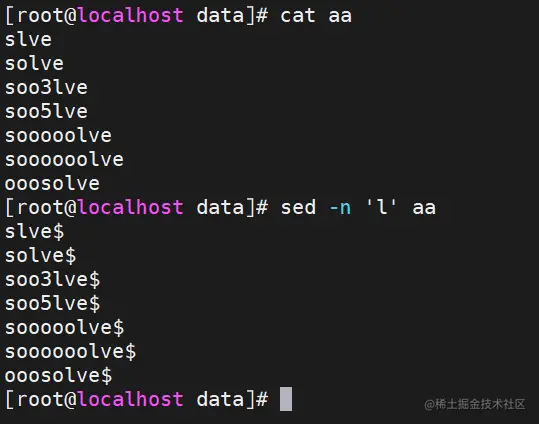 l(小写L)∶打印数据流中的文本和不可打印的ASCII字符(比如结束符$、制表符\t)