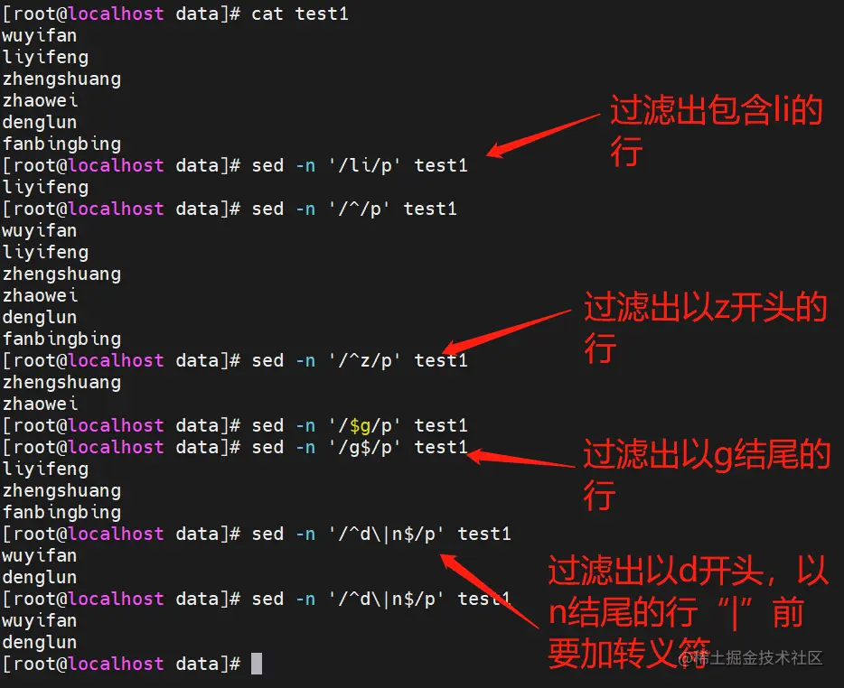 - 显示∶发送修改后的内容到输出流。在发送数据后, 模式空间将会被清空。在所有的文件内容都被处理完成之前,上述过程将重复执行,直至所有内容被处理完