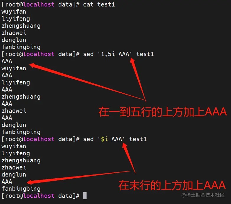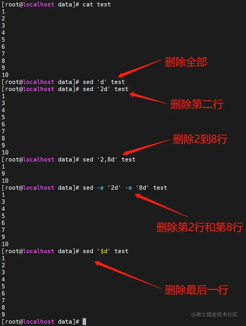 - 执行:默认情况下,所有的sed 命令都在模式空间中顺序地执行,除非指定了行的地址, 否则sed 命令将会在所有的行上依次执行