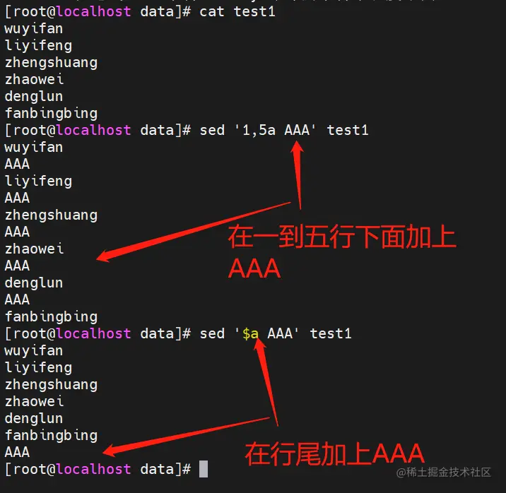 r:是读命令。sed使用该命令将一个文本文件中的内容加到当前文件的特定位置上