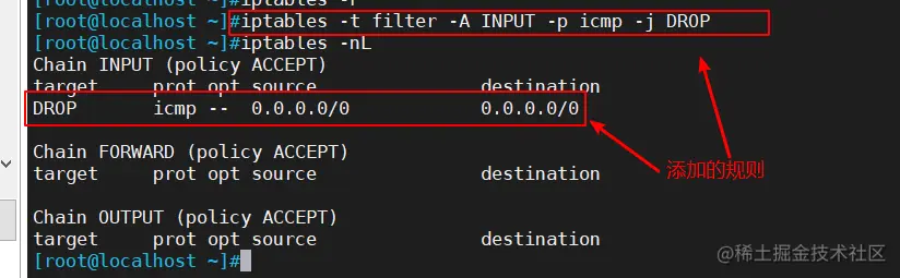 iptables -t filter -A INPUT -p icmp -j DROP 禁止ping通本主机(无响应)