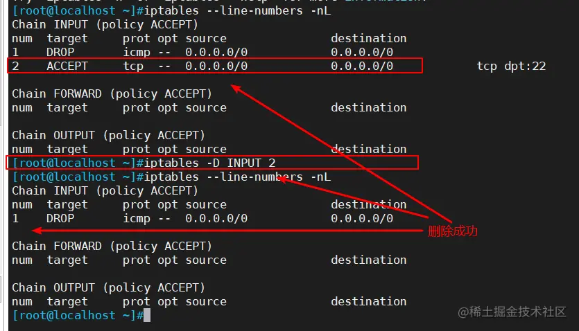 删除规则前,以及将默认规则修改为DROP之前,一定要先想清楚会不会导致ssh断连。