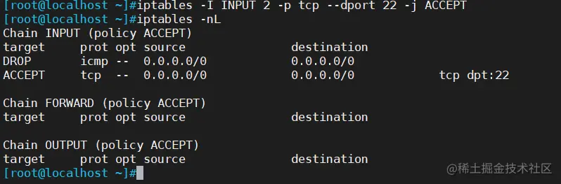 iptables -I INPUT 2 -p tcp --dport 22 -j ACCEPT 允许主机ssh端口通过