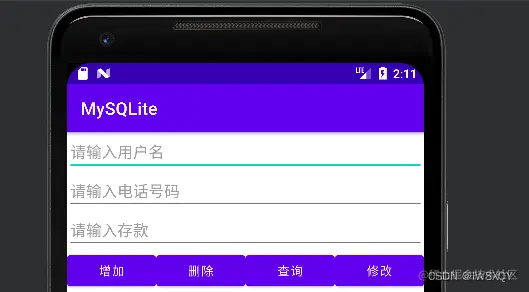 Android开发---SQLite基本操作 IWSXQY 2022-11-08 62 阅读1分钟 本文已参与「新人创作礼」活动,一起开启掘金创作之路。 项目架构 编辑 1.新建一个项目MySQLite 编辑 2.如何查找自己的私有文件,一般都存储在data文件里面: 3.那么如何找到刚刚新建工程的内容呢,我们需要观察一下新建的包名字为什么? 那么接下来就是画一下主页面: 需要源码请私信哦! 本篇博客到此就结束啦!目前实现了增删查的功能。