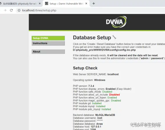 下载DVWA,将DVWA文件夹放在WWW文件夹下