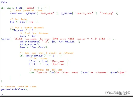 impossible级别的代码采用了PDO技术,划清了代码与数据的界限,能有效防御sql注入,同时查询返回结果数量为1时,才会成功输出,这样有效预防了脱裤。