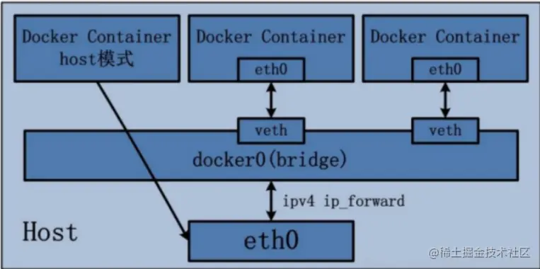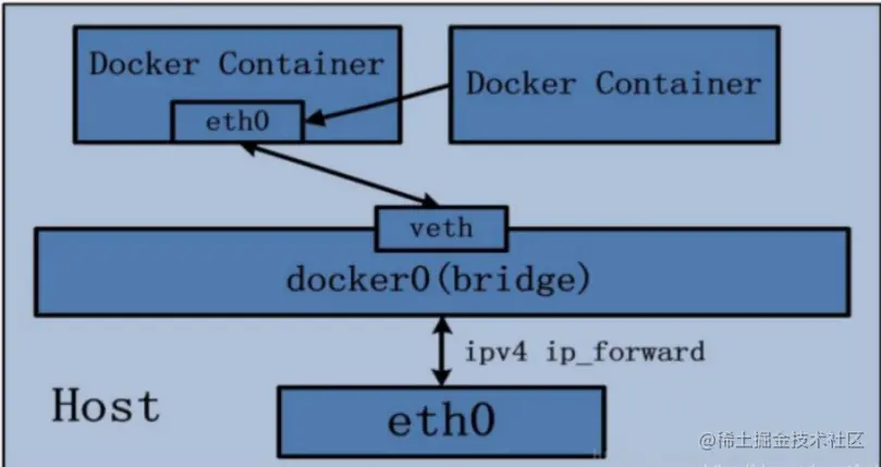 bridge模式:使用--network bridge指定,默认使用docker0 -