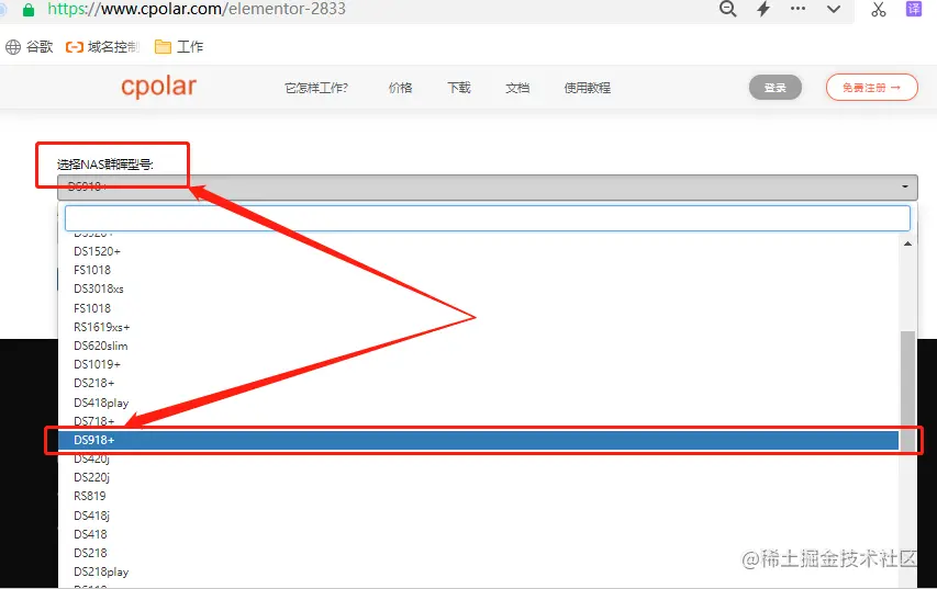 到这里,我们就成功的设置了一个能够为用户共享的文件夹,并且能够方便的对该文件夹内的文件进行上传、下载和编辑。不过,此时用户还只能在局域网内对其进行操作。想要让群晖NAS在公共互联网上也能访问到,还需要在群晖系统内安装一个cpolar(下载页面为“www.cpolar.com/elementor-2…”)。在这个页面,我们能通过选择群晖型号和版本号,下载到适用的cpolar版本。如果不知道型号的,可以在群晖桌面的“控制面板”中,点击“信息中心”查看。