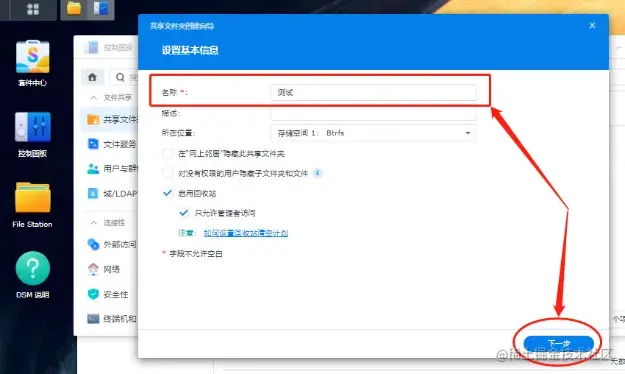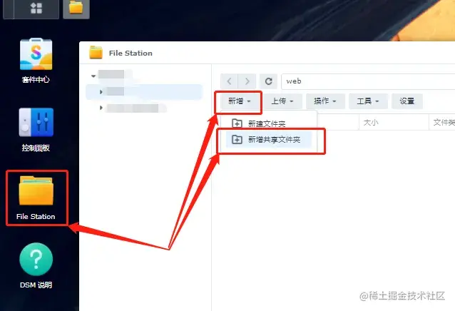 首先我们在群晖系统内设置一个能够多人共享的文件夹,我们打开群晖系统桌面的file station,在主页面的“新增”选项卡内点选“新增共享文件夹”项。在这里我们就能对打算建立的共享文件夹进行设置
