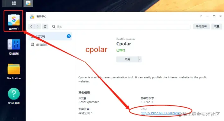 在上篇介绍中,我们为大家展示了如何在群晖系统上安装cpolar软件,接着我们就能使用cpolar,为群晖系统建立起安全高效的数据隧道,让我们能在公共互联网上的其他设备上访问该群晖NAS。