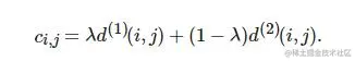 采用上述两种度量的线性加权作为最终度量, 有