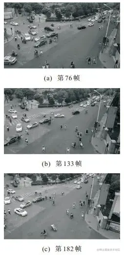 本文以无人机数据集进行实验, 选取第76、133和182帧, 如图 5所示. 由图 5可见, 本文算法可有效检测和跟踪大部分行人, 且实时性与之前检测跟踪实验结果具有相同数量级, 但对于相互遮挡和全身信息不全的行人检测跟踪效果相对较差.